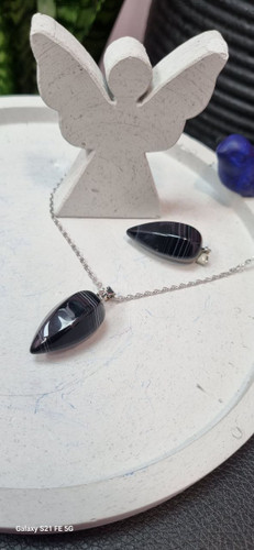 ناموجودگردنبند استیل و سنگ منشور تورمالین سیاه