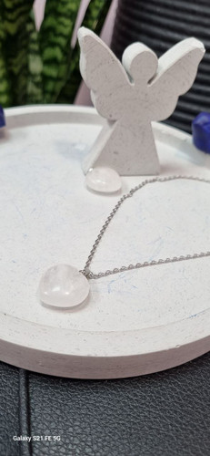 گردنبند استیل و آویز سنگ رُز کوارتز اشکی
