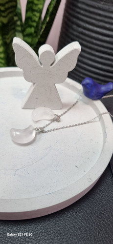 ناموجودگردنبند استیل و آویز ماه سنگ رُز کوارتز