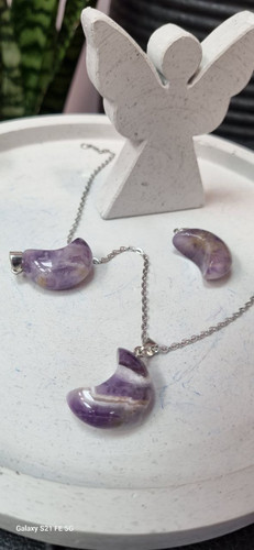 ناموجودگردنبند استیل سنگ طبیعی آمیتیست با نگین مخراجکاری سوارسکی