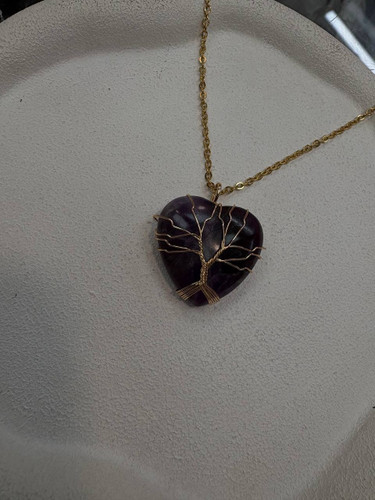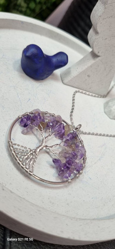 گردنبند استیل درخچه زندگی سنگ آمیتیست