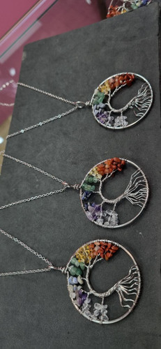 گردنبند استیل با آویز سنگ هفت چاکرا