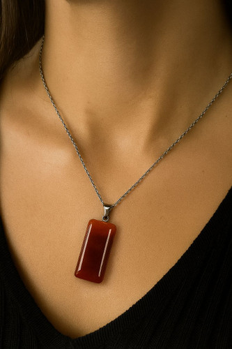 ناموجودگردنبند استیل و اویز ماه سنگ عقیق قرمز کارنلین