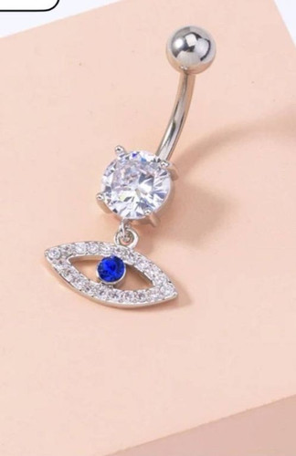 ناموجودپرسینگ ناف تک نگین و آویز اشک آبکاری نقره