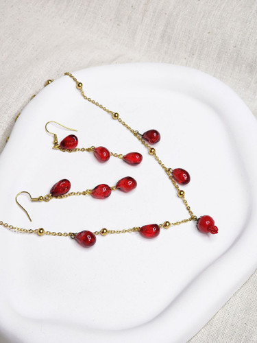 ناموجودست گردنبند و گوشواره استیل یلدایی