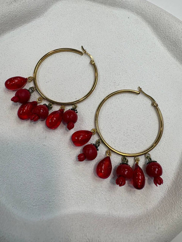 گوشواره حلقه ای یلدایی استیل دونه انار و انار