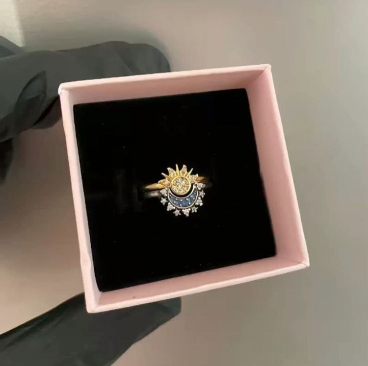 انگشتر ست دو تایی ماه و خورشید نگین دار