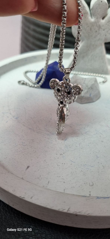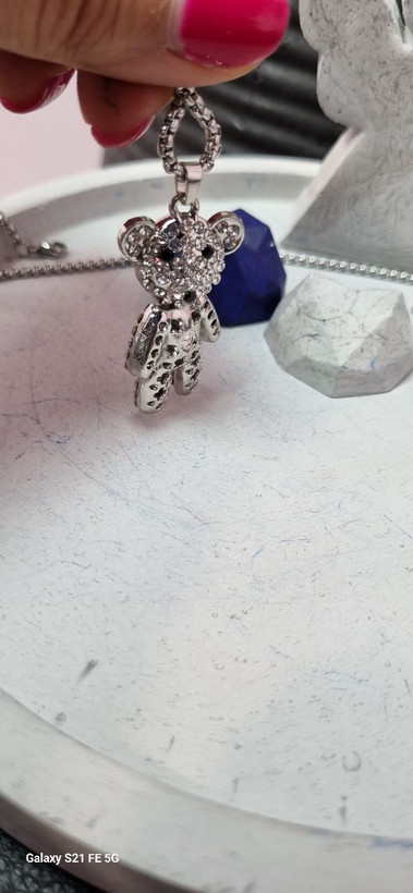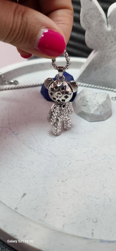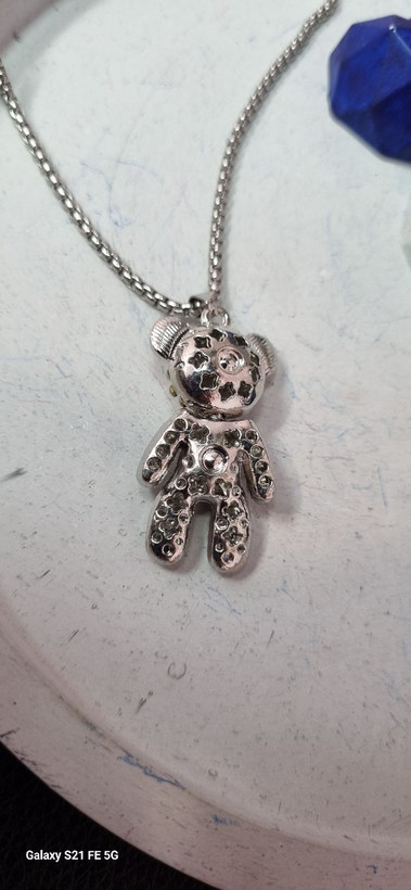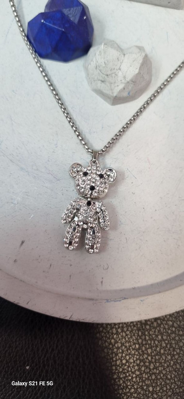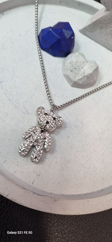 گردنبند استیل نقره ای تدی متحرک نگین دار