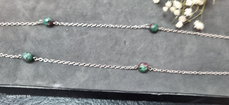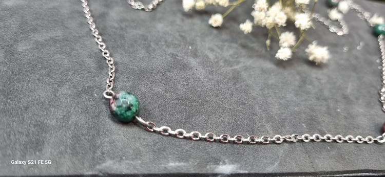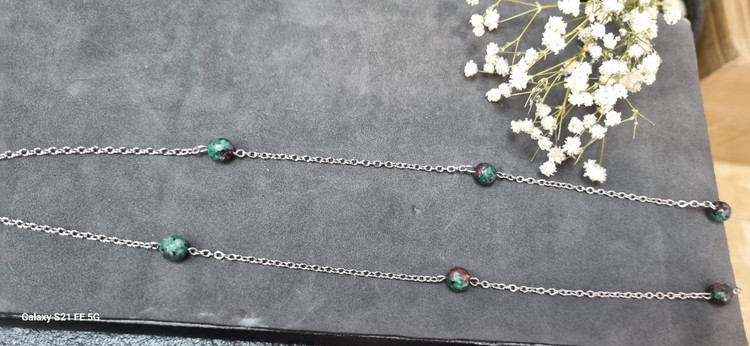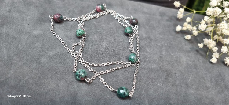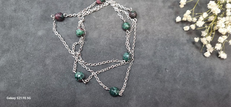 گردنبند استیل نقره ای رو مانتویی سنگ طبیعی روبی زئوست