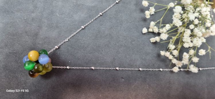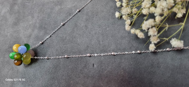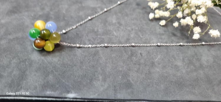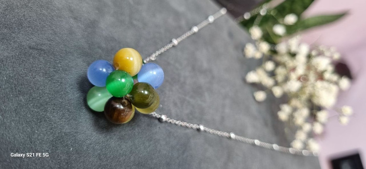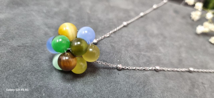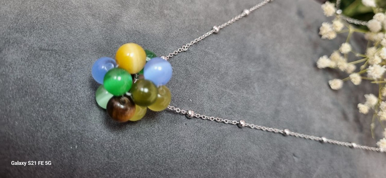 گردنبند استیل نقره ای رو مانتویی سنگ طبیعی چشم گربه