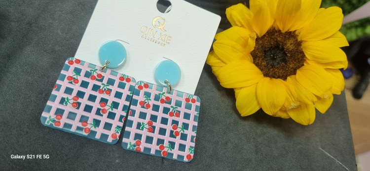 گوشواره طلقی رنگی رنگی با پایه استیل