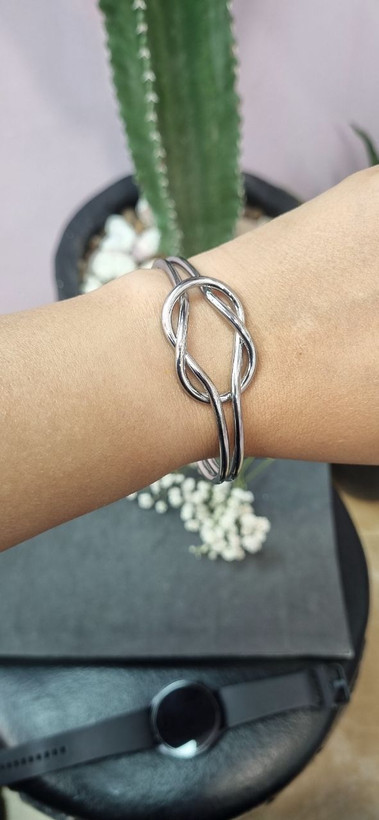دستبند بنگل استیل ابکاری نقره وارداتی