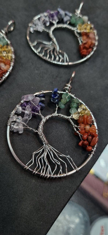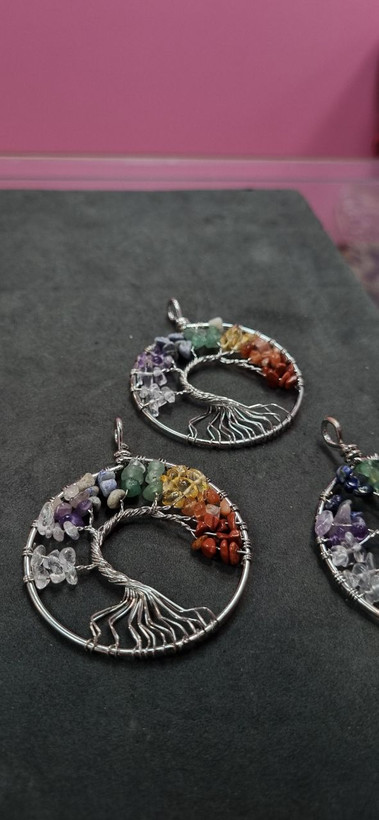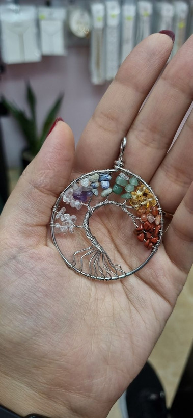 گردنبند استیل با آویز سنگ هفت چاکرا