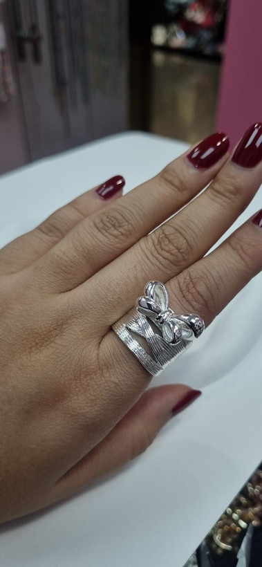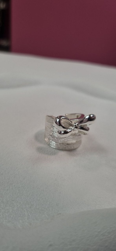 انگشتر استیل پاپیون نقره ای وارداتی آبکاری نقره