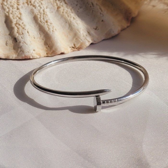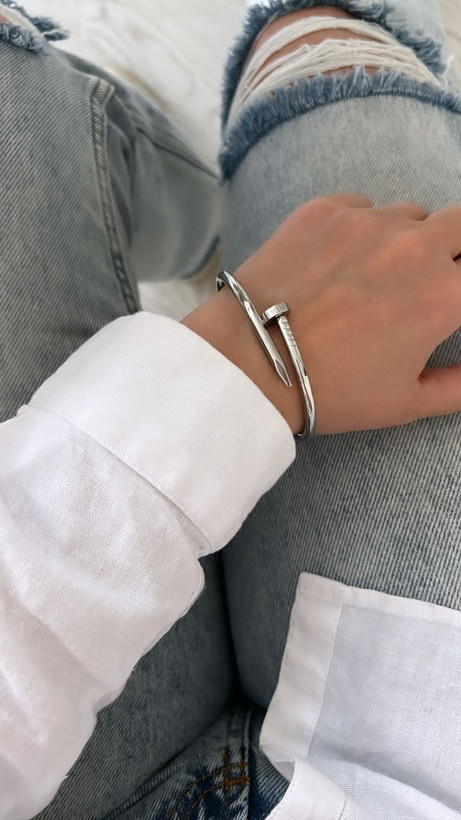 دستبند بنگل میخی کارتیر استیل نقره ای