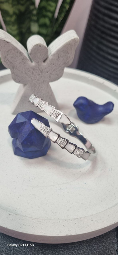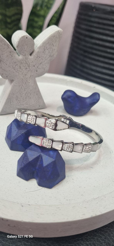 دستبند بنگل صدفی استیل نقره ای