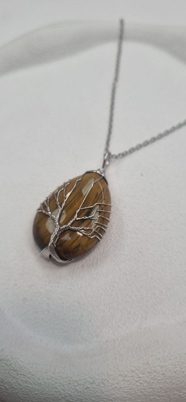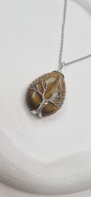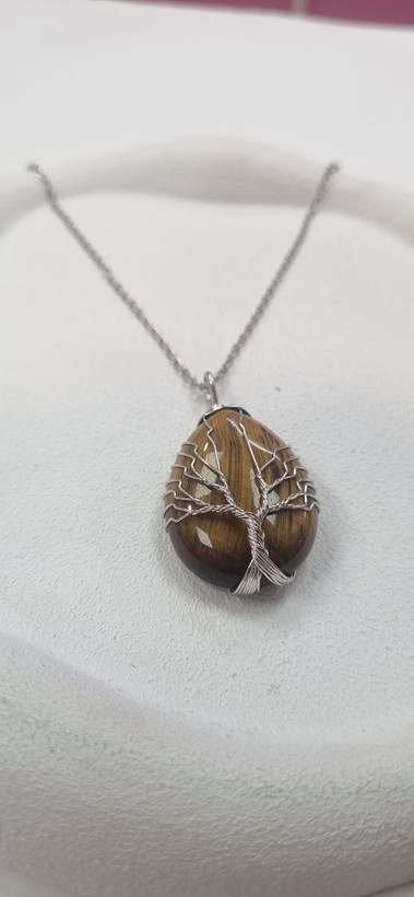 گردنبند سنگ چشم ببر با زنجیر استیل نقره ای رنگ ثابت بدون ایجاد حساسیت و تغییر رنگ
