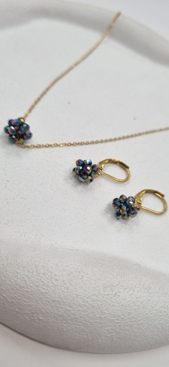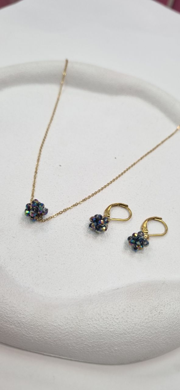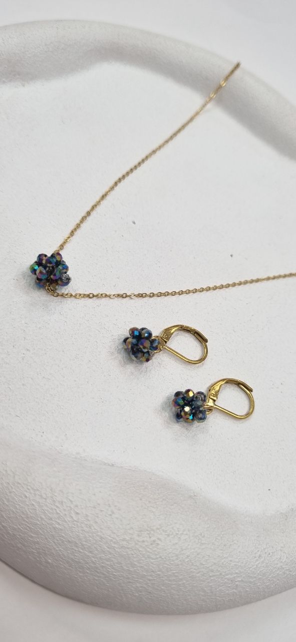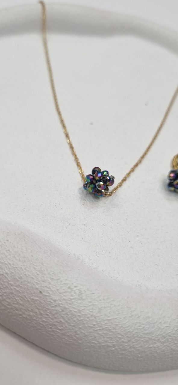 ست طلایی گردنبند و گوشواره تمشک کریستال هفت رنگ