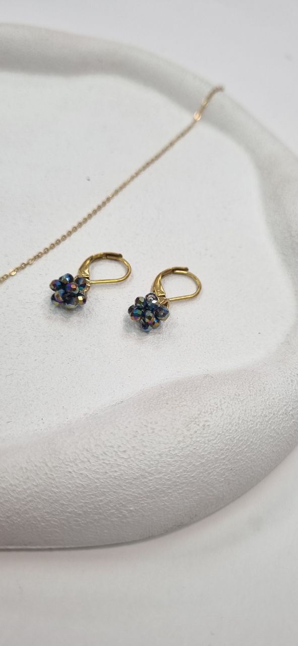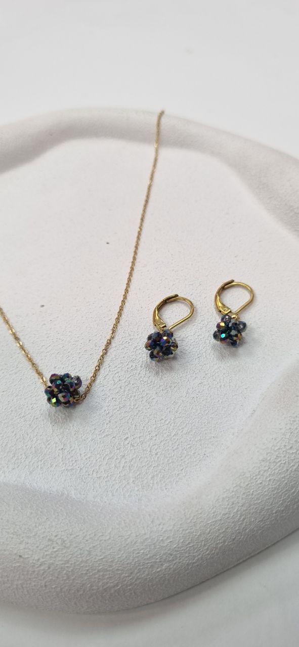 ست طلایی گردنبند و گوشواره تمشک کریستال هفت رنگ