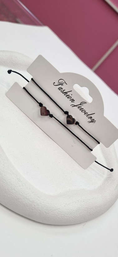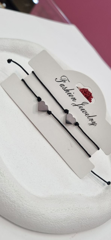 دستبند ست کاپلی پلاک استیل مشکی قلب