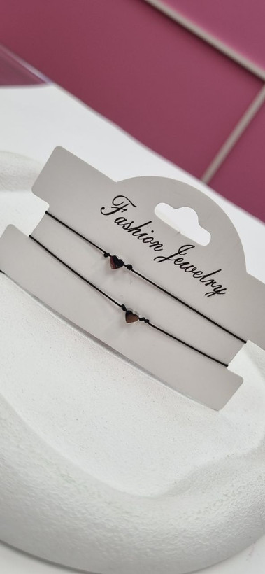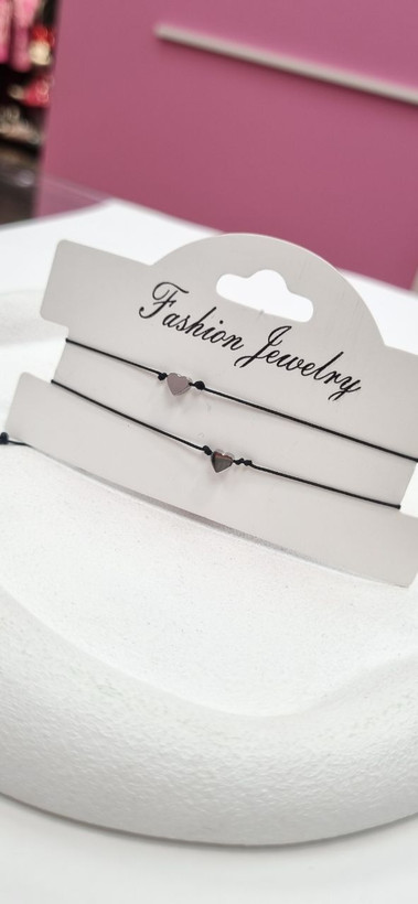 دستبند ست کاپلی استیل مشکی قلب ریز