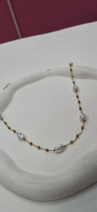 گردنبند دو لاین استیل نقره ای و طلایی خلخال