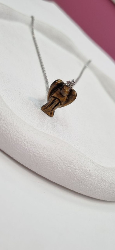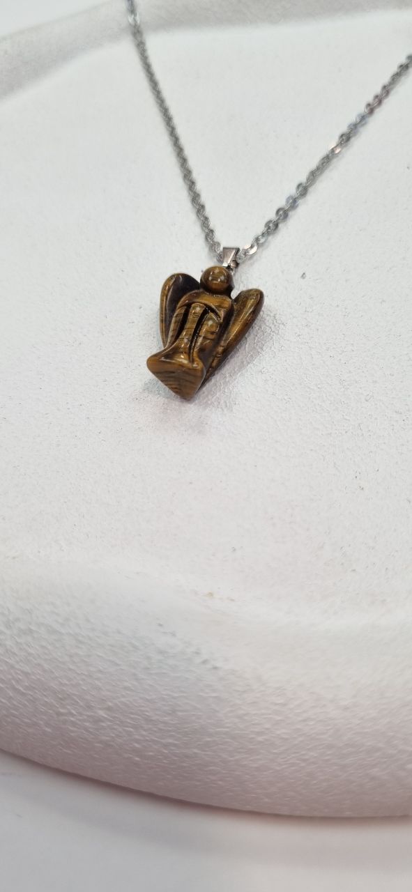 گردنبند استیل اویز سنگ طبیعی چشم ببر فرشته