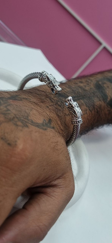 دستبند بنگل دوسر اژدها مفتولی استیل