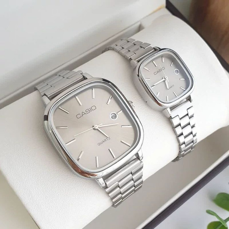 ساعت ست کاسیو اولدمانی نقره ای بزرگ و کوچک
