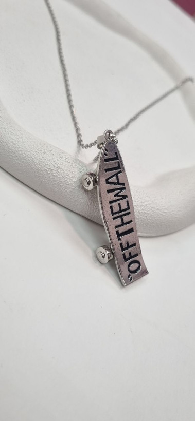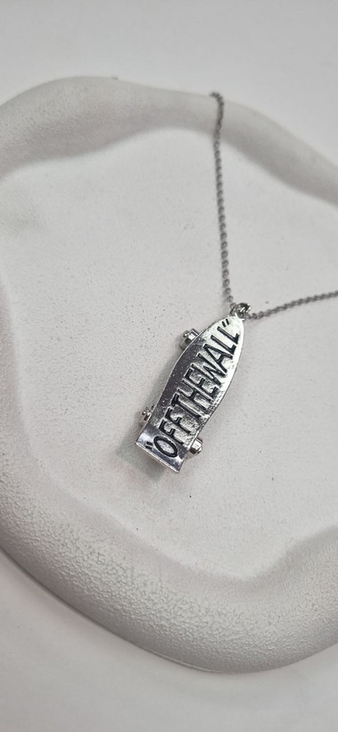 گردنبند استیل نقره ای و اویز اسکیت برد