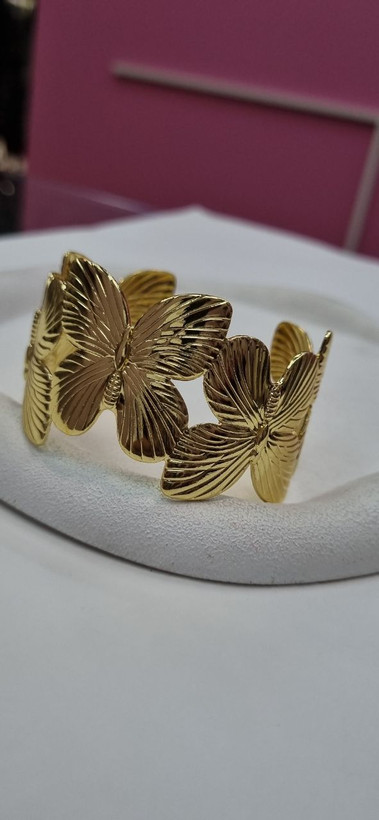 دستبند بنگل استیل وارداتی طلایی پروانه