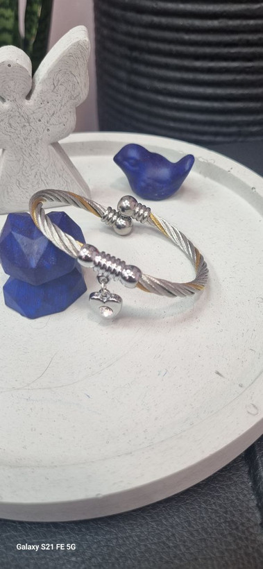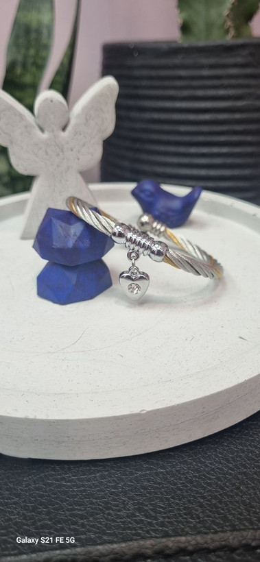 دستبند بنگل استیل دورنگ نقره ای مدل پیچی رنگ ثابت بدون ایجاد حساسیت و تغییر رنگ