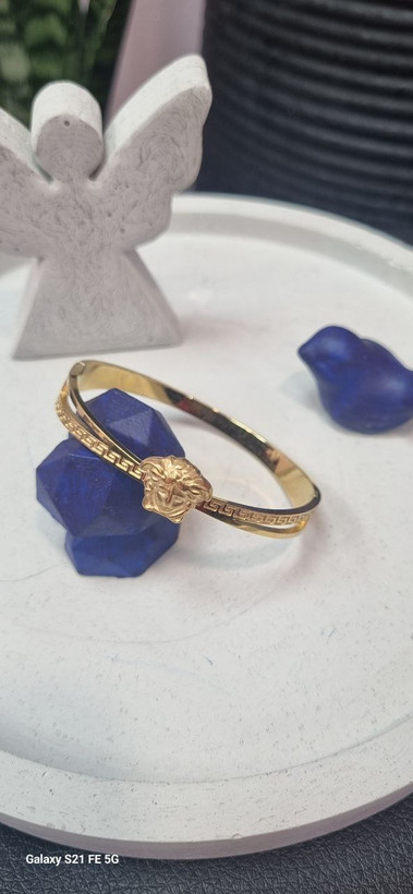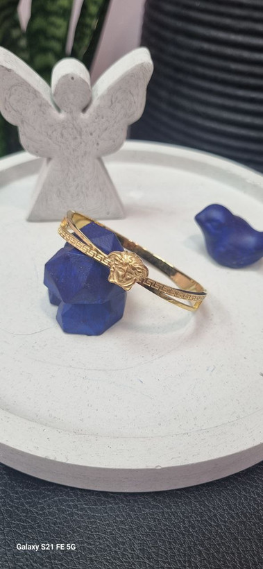 دستبند بنگل استیل ورساچه طلایی رنگ ثابت بدون ایجاد حساسیت و تغییر رنگ