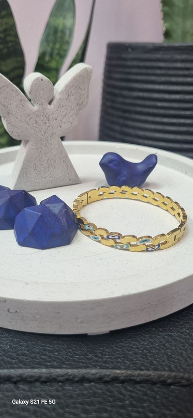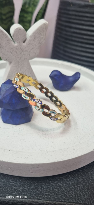 دستبند بنگل استیل چشم نظر طلایی رنگ ثابت بدون ایجاد حساسیت و تغییر رنگ