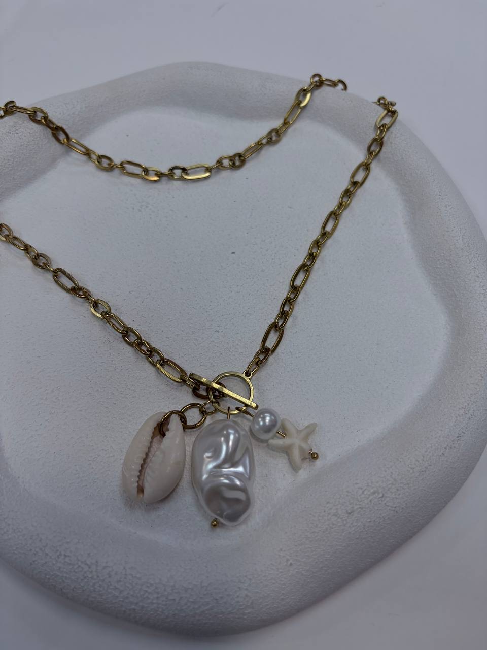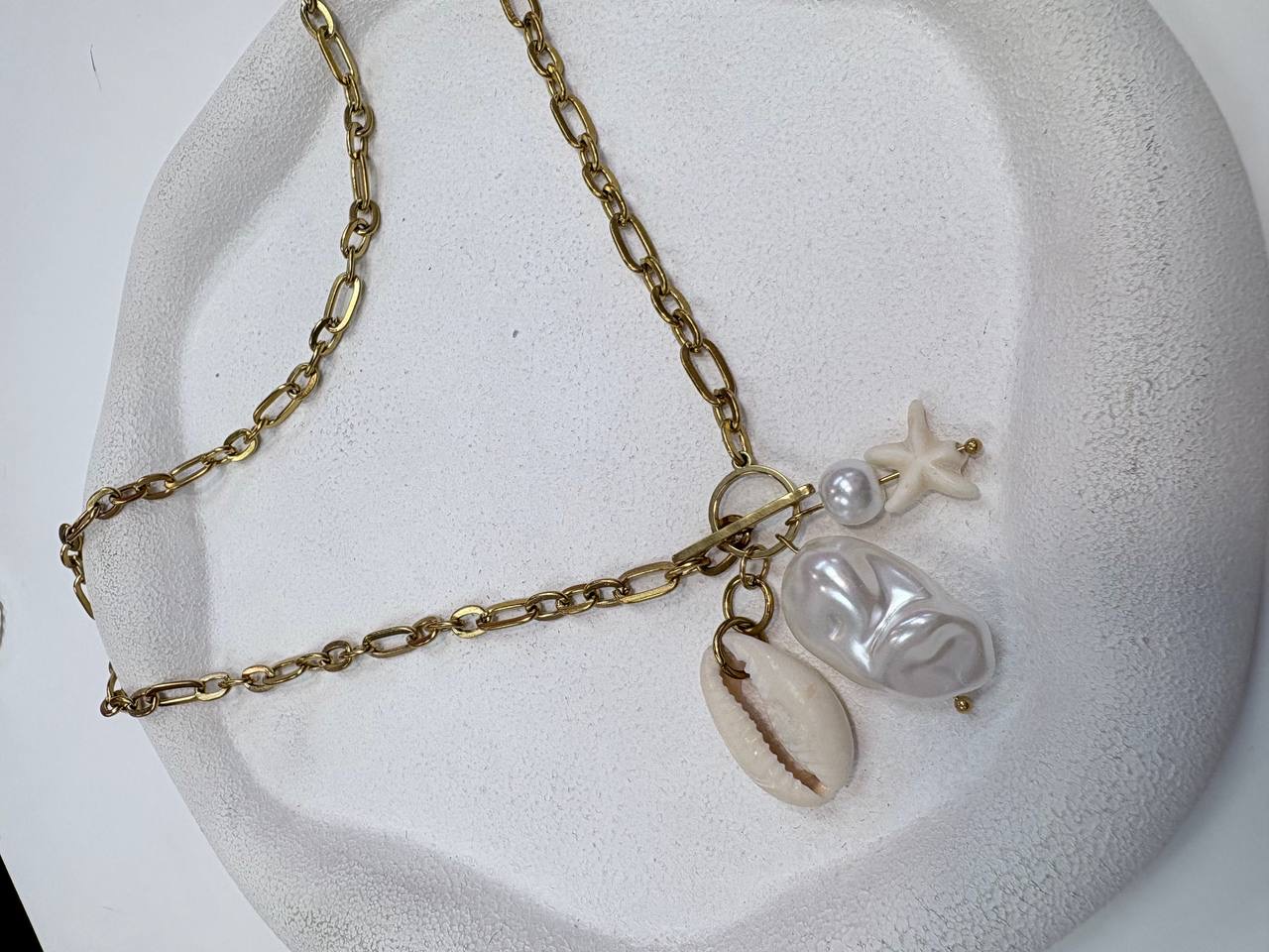 گردنبند استیل قفل تی دریایی ستاره صدف مروارید