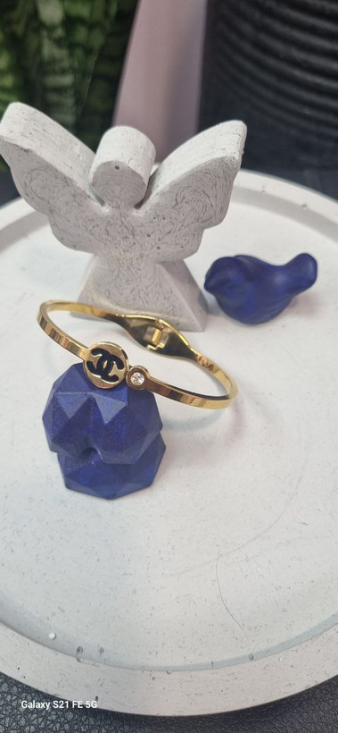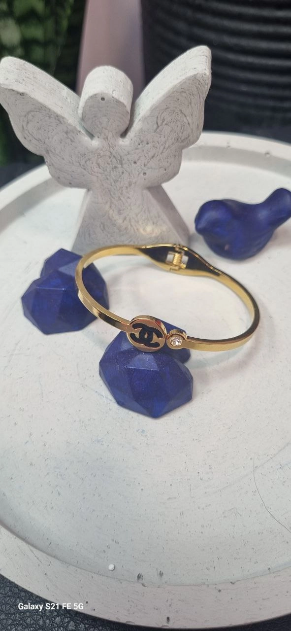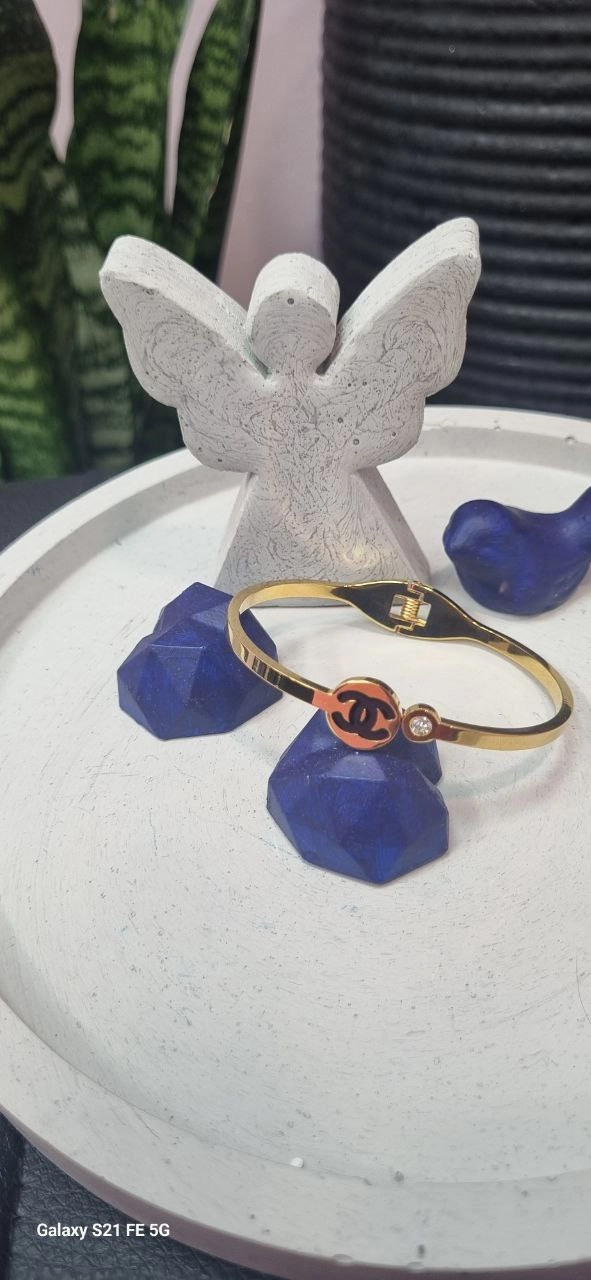 دستبند بنگل استیل شنل نگین دار طلایی رنگ ثابت بدون ایجاد حساسیت و تغییر رنگ