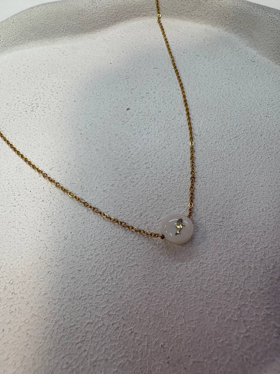 گردنبند استیل طلایی و قدف طبیعی