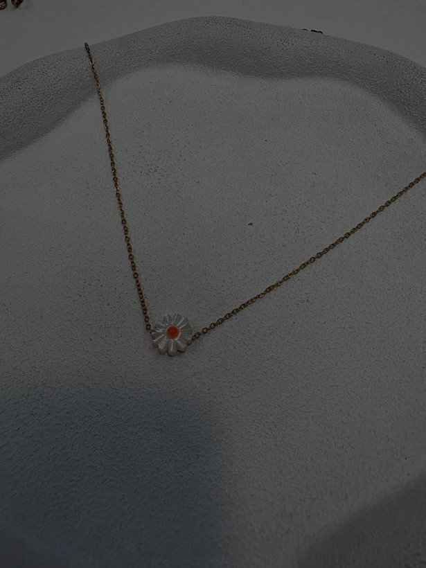 گردنبند استیل طلایی و صدف طبیعی بابونه