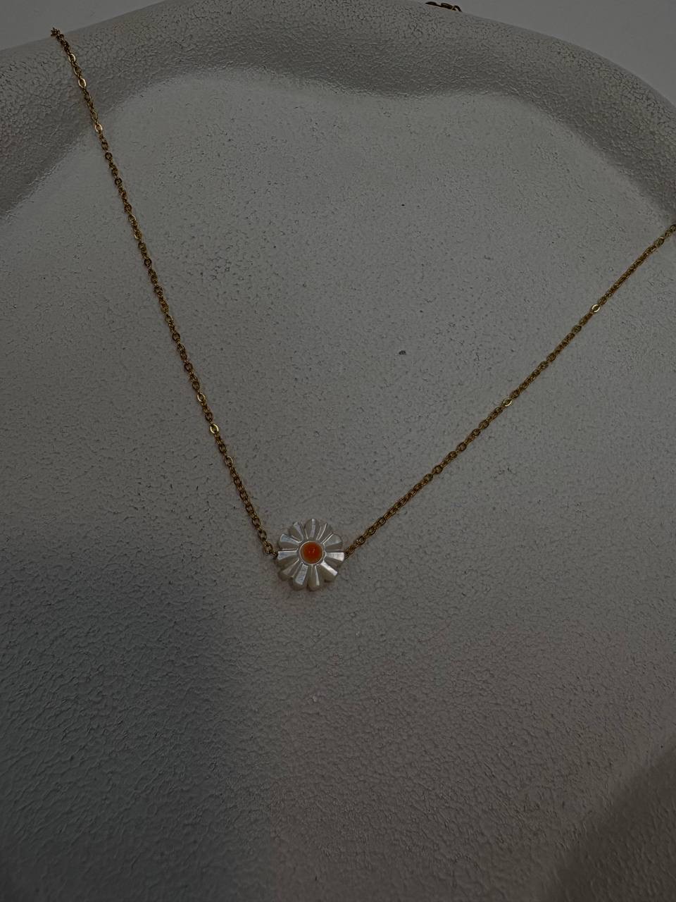 گردنبند استیل طلایی و صدف طبیعی بابونه