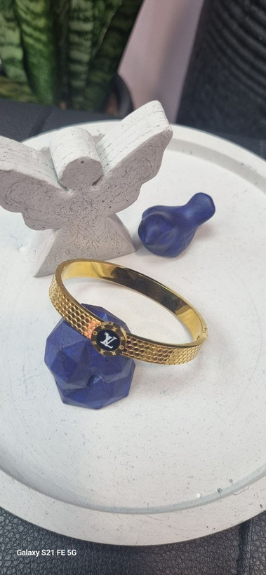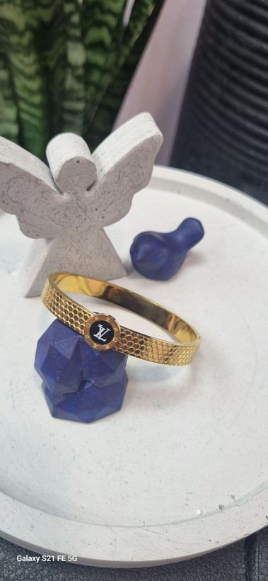 دستبند بنگل استیل لویی ویتون طلایی رنگ ثابت بدون ایجاد حساسیت و تغییر رنگ