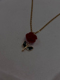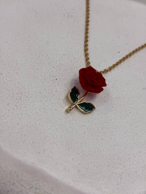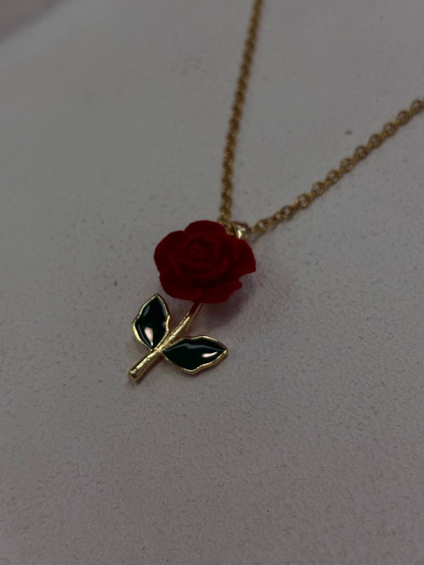 گردنبند استیل طلایی گل رز سه بعدی مخملی