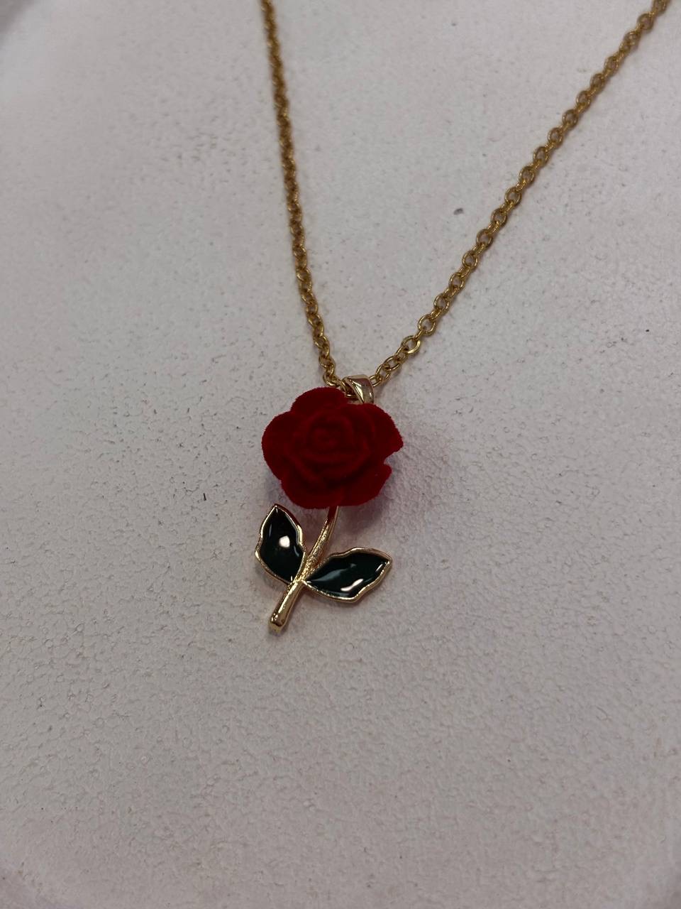 گردنبند استیل طلایی گل رز سه بعدی مخملی