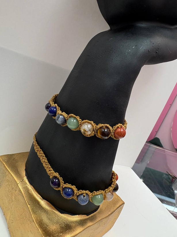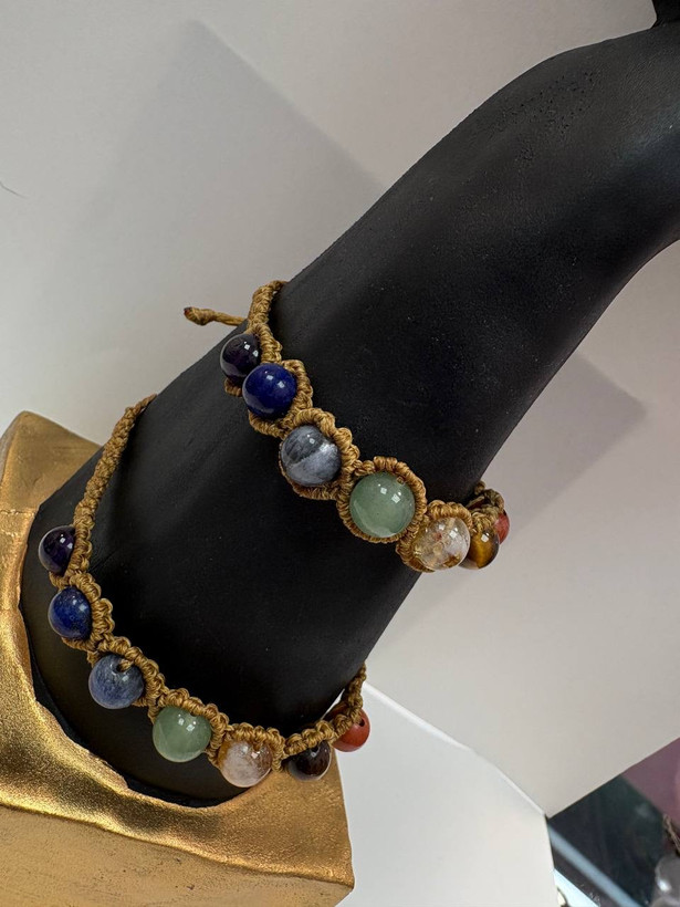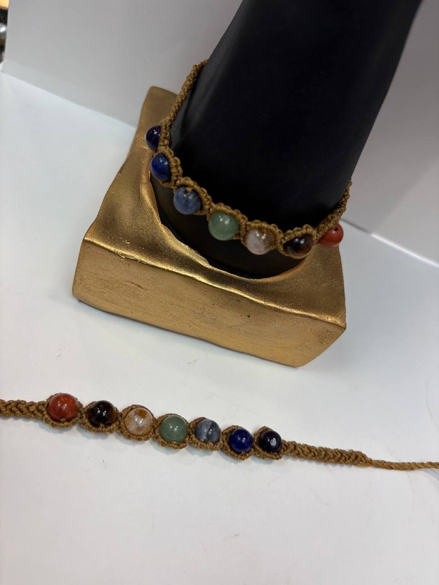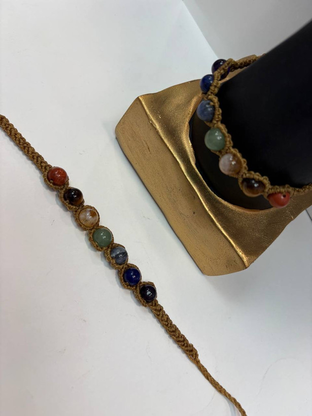 دستبند مکرومه سنگ طبیعی هفت چاکراه