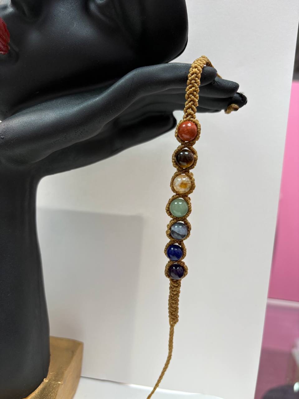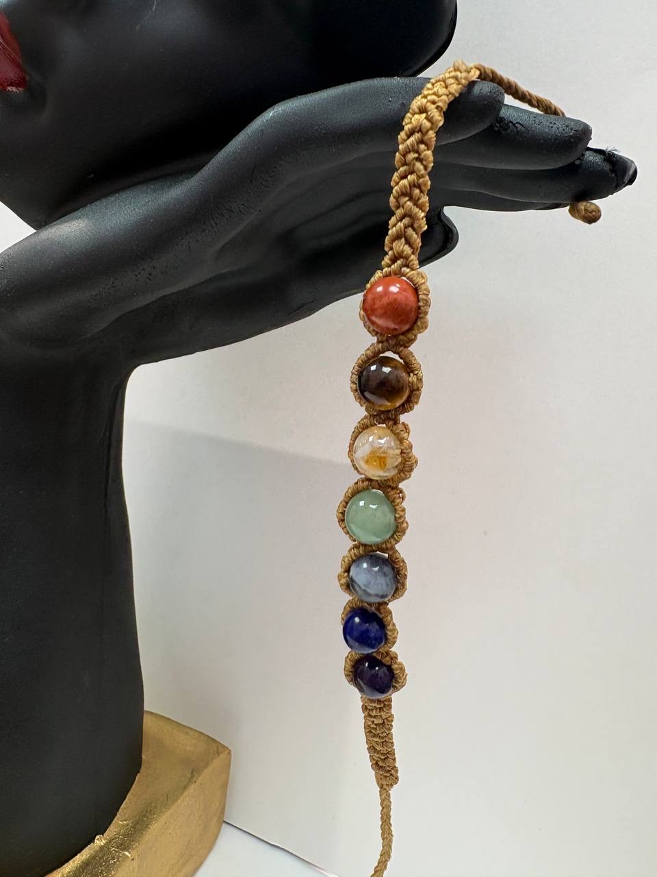 دستبند مکرومه سنگ طبیعی هفت چاکراه