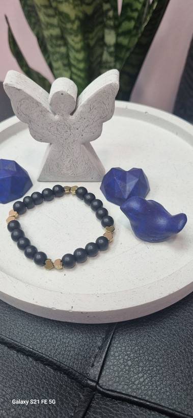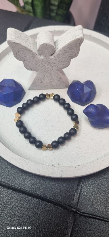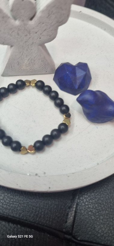 دستبند سنگ اونیکس مشکی و حدید قلب