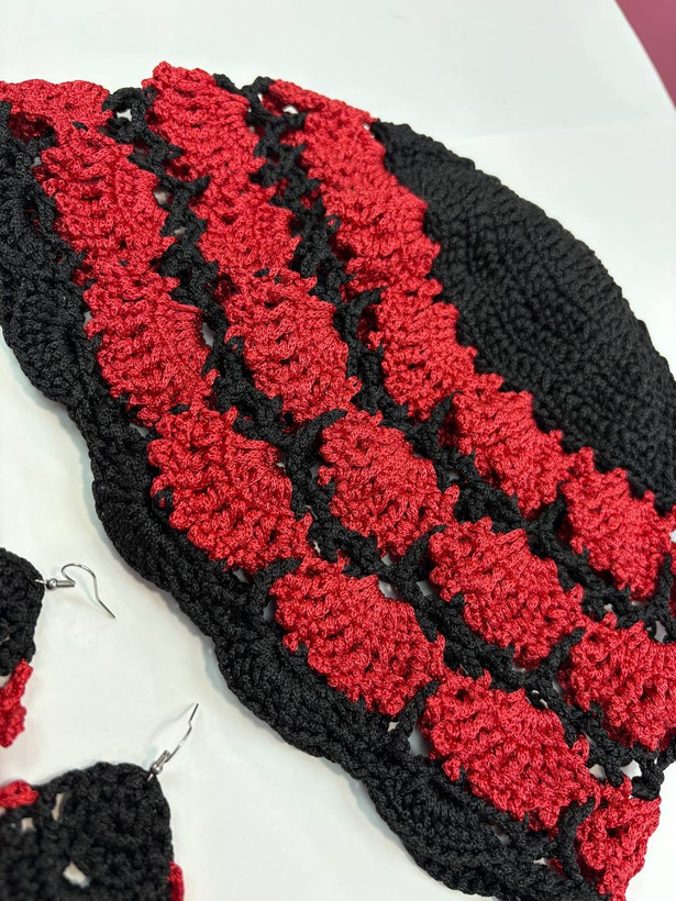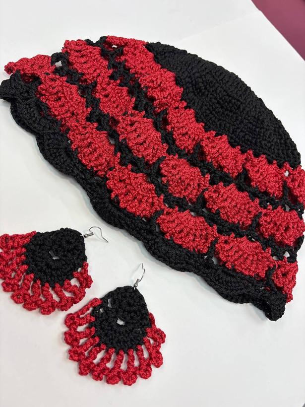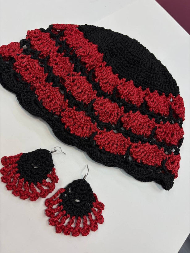 ست کلاه و گوشواره بافت کتان
