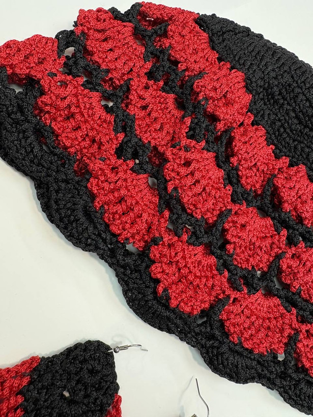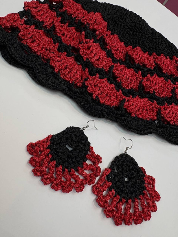 ست کلاه و گوشواره بافت نخ ترک یلدایی