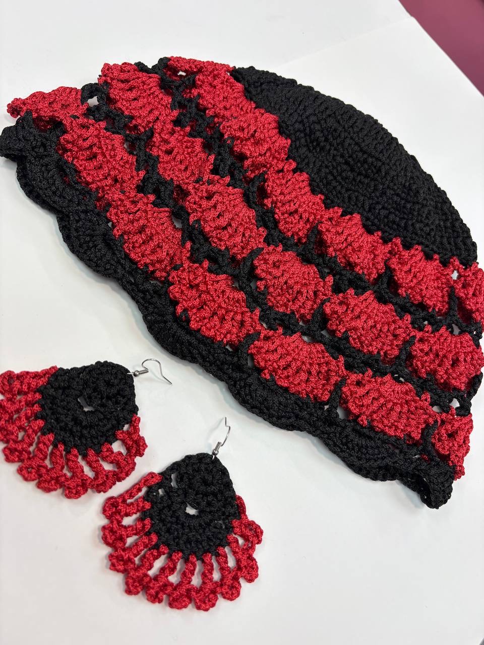 ست کلاه و گوشواره بافت نخ ترک یلدایی