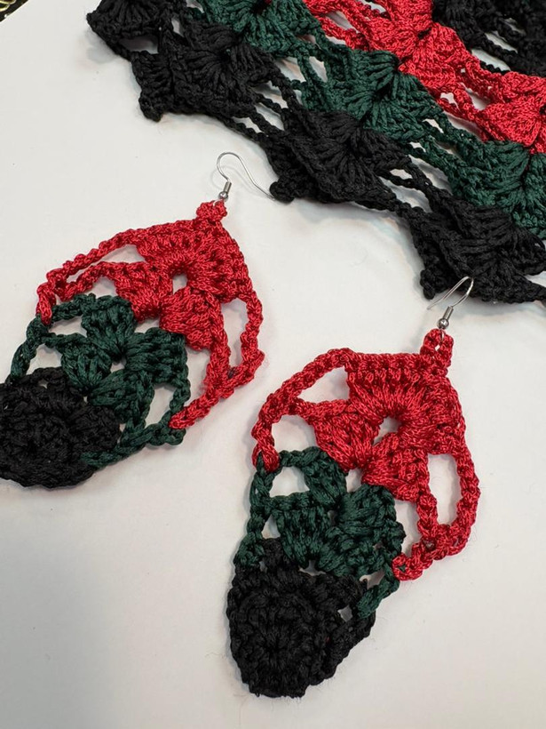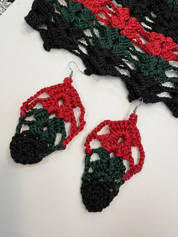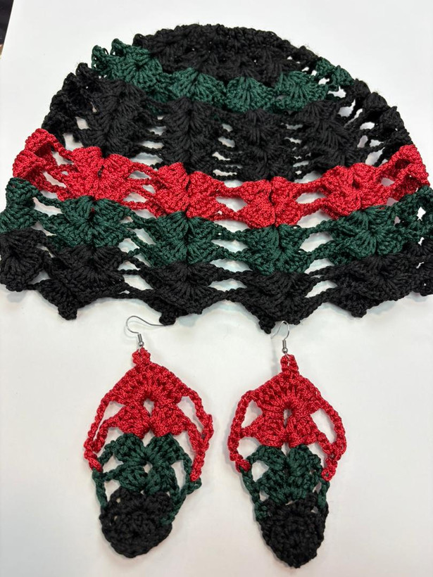 ست کلاه و گوشواره بافت نخ ترک یلدایی
