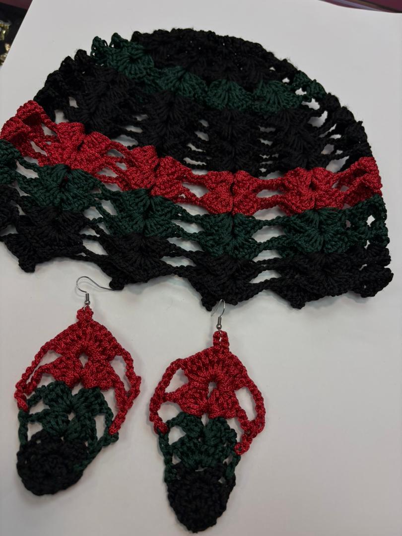 ست کلاه و گوشواره بافت نخ ترک یلدایی